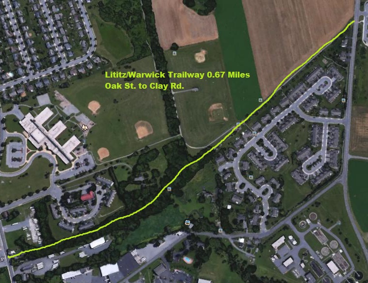 The Lititz/Warwick Trailway extends from Oak street in Lititz Borough until Clay Rd. in Warwick Township; next to the township building.